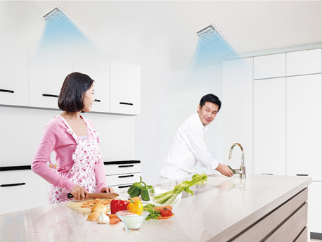 情侶送風(fēng):廚享特設(shè)雙出風(fēng)口,開啟時,兩個風(fēng)口從不同位置出風(fēng),增加夫妻搭檔烹飪的 樂趣。 定點送風(fēng):設(shè)置定點送風(fēng),直吹人體,能快速降低燥熱感,讓您享受清涼烹飪,同 時 避免大范圍送風(fēng)產(chǎn)生的能耗。