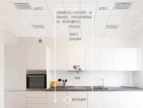 機組可智能檢測風(fēng)口油煙臟堵程度,并自動匹配風(fēng)機轉(zhuǎn)速,保證風(fēng)量